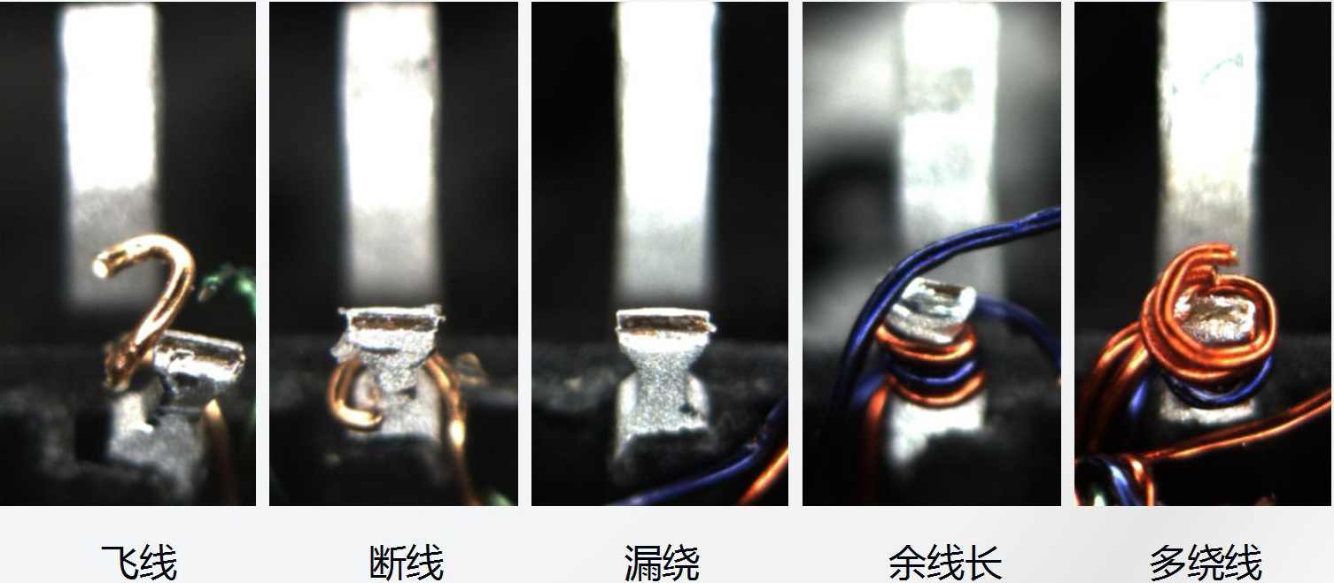 繞線質量AI檢測系統針對網絡變壓器Pin腳繞線的情況進行檢測,主要包含余線長,顏色錯誤,斷線,掉線,漏線等不良情況,下圖為產品正反兩面圖片。