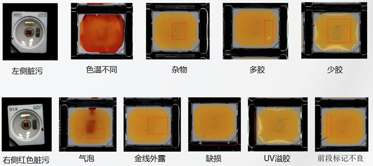 LED缺陷AI視覺檢測系統由我司自主研發,適用于貼片LED底部缺陷,正面反料、側料、倒料、缺料、邊緣毛刺檢測及包裝復檢,檢測速度高達45K/小時。過檢率小于萬分之三,無漏檢。檢測規格包含LED-1010、LED-2121、LED-2835等規格的貼片LED。本產品使用深度學習算法,產品具有高效性,準確性,可擴展性強等優點,突破了傳統算法限制。