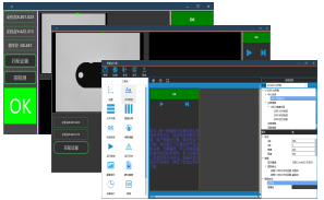 自定義檢測界面,用戶logo,圖像顯示,圖形顯示,參數控制按鈕,表格,圖表,運行控制按鈕,統計,界面布局,界面?浚嘟缑,多界面控制按鈕,自定義顯示文字 ,界面顏色控制 ,界面字體控制,導出可執行exe,導出C,C#方便二次開發。支持界面控件快速擴展。