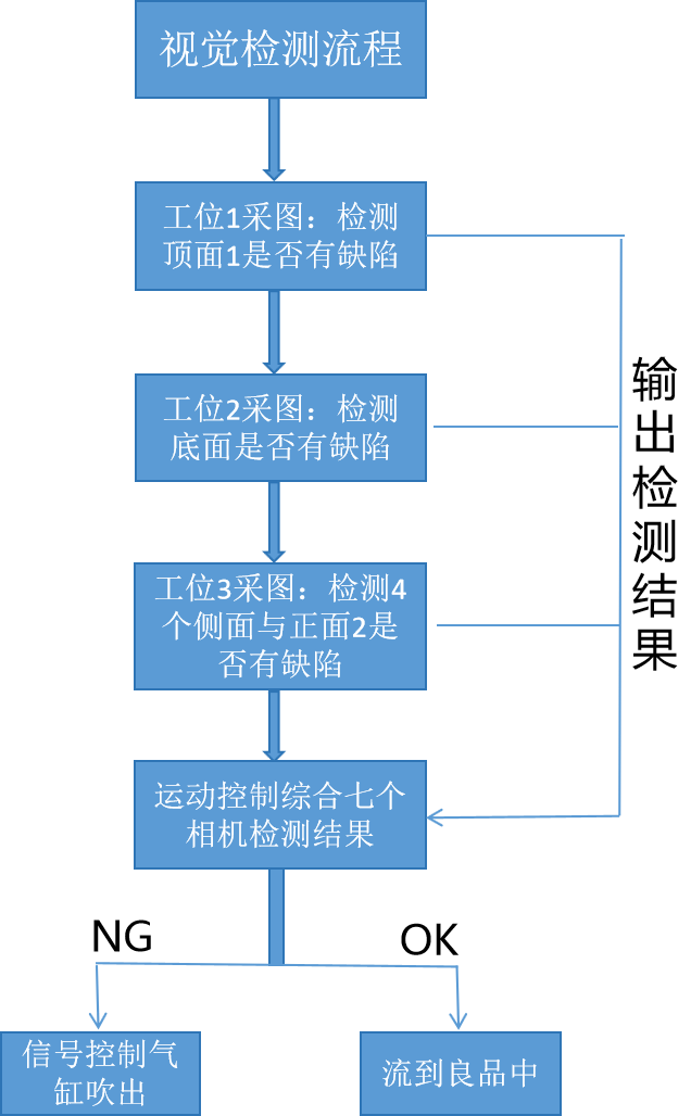 2.速度快、效率高、成本低,機器視覺檢測數量能達到250個/min,提高了生產效率,節約了后面的檢測人員的人力成本;
